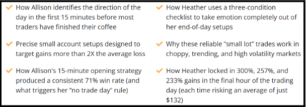Allison’s trading 15 minutes a day with a 71% win rate.